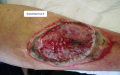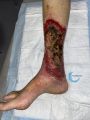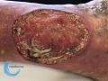 - Prise en charge initiale: plaie nécrotique inflammatoire évoluant depuis 6 mois et résistante aux traitement locaux avec une détersion mécanique très douloureuse